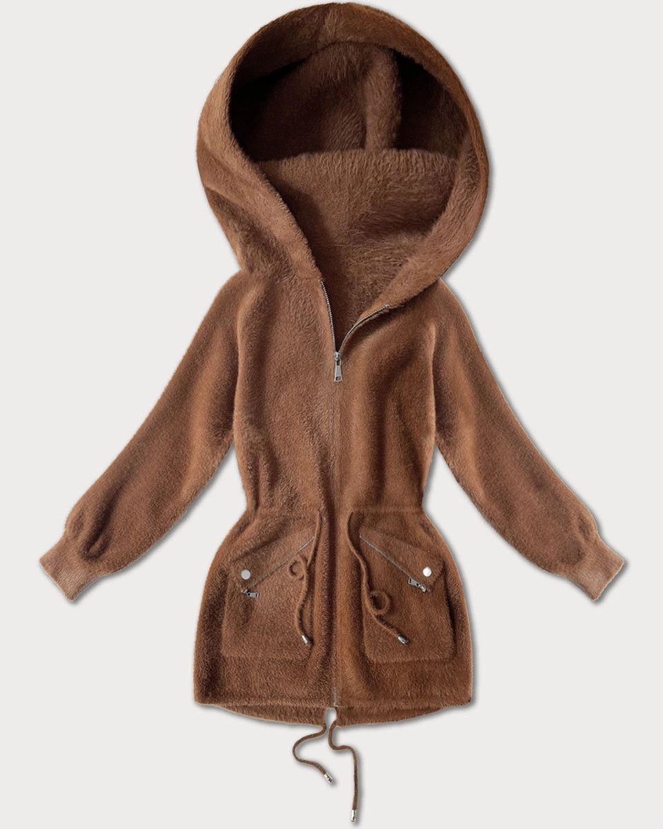 Přehoz přes oblečení typu alpaka v karamelové barvě s kapsami (W010#)