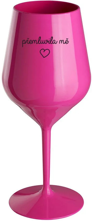 PŘEMLUVILA MĚ - růžová nerozbitná sklenice na víno 470 ml