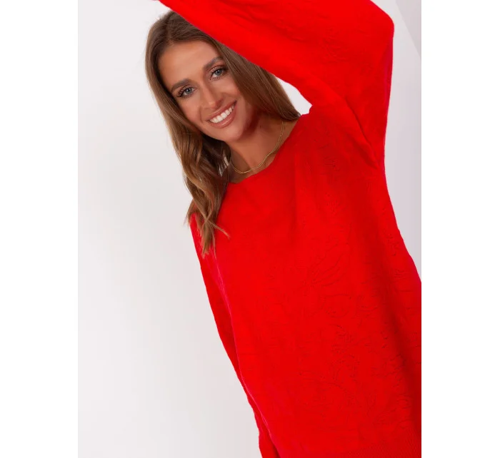 Klasický červený svetr s dlouhými rukávy .