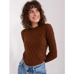Hnědý klasický svetr s dlouhými rukávy.