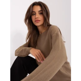 Tmavě béžový klasický svetr s bavlnou .