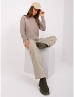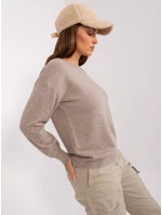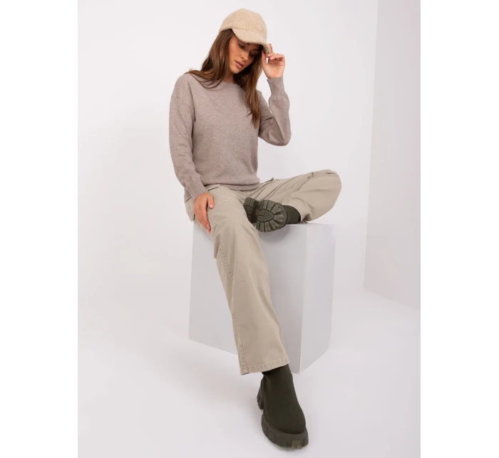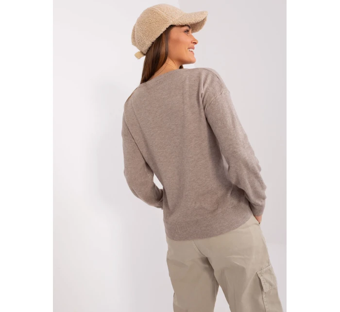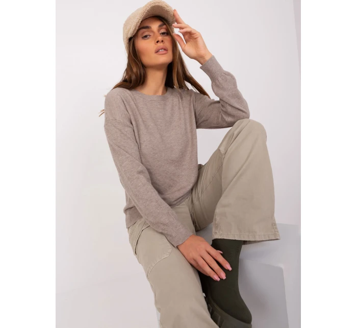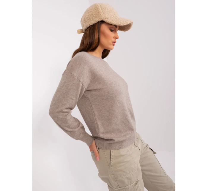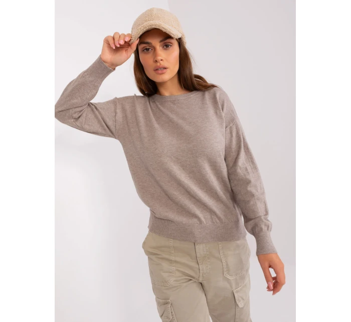 Tmavě béžový klasický svetr s dlouhými rukávy .