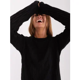 Černý dámský klasický svetr s žebrovanými manžetami .