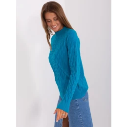 Tyrkysový dámský svetr s klasickým vzorem .