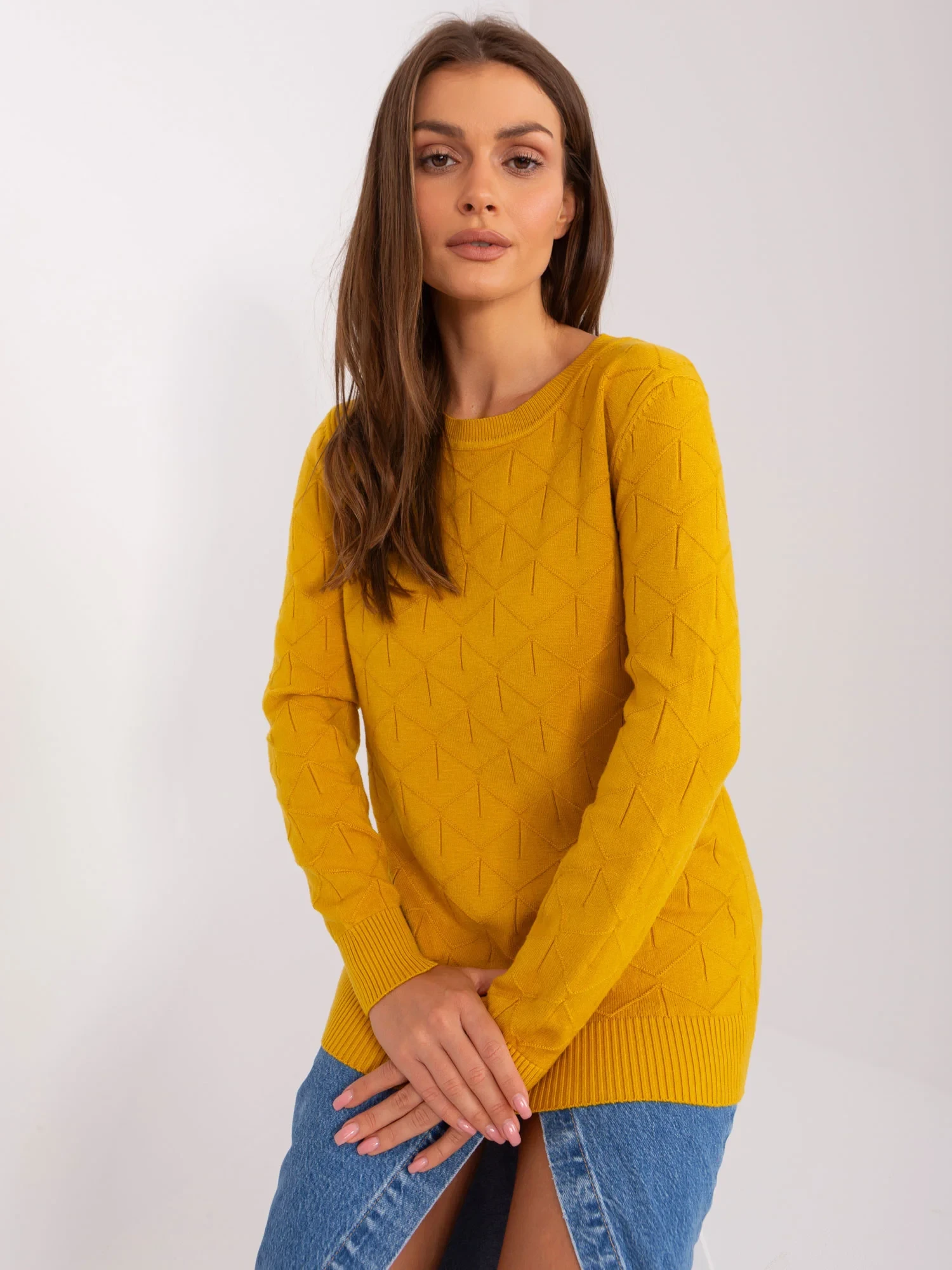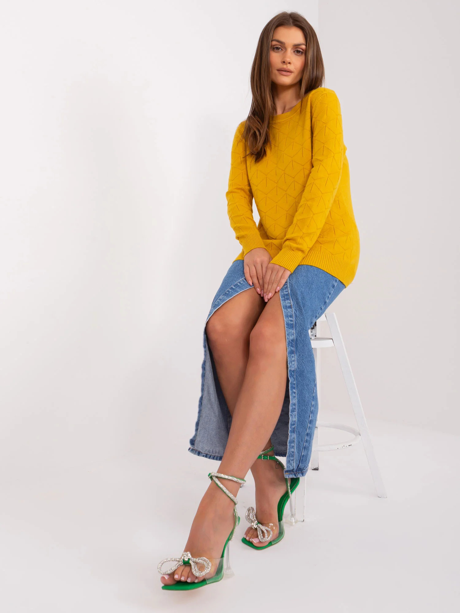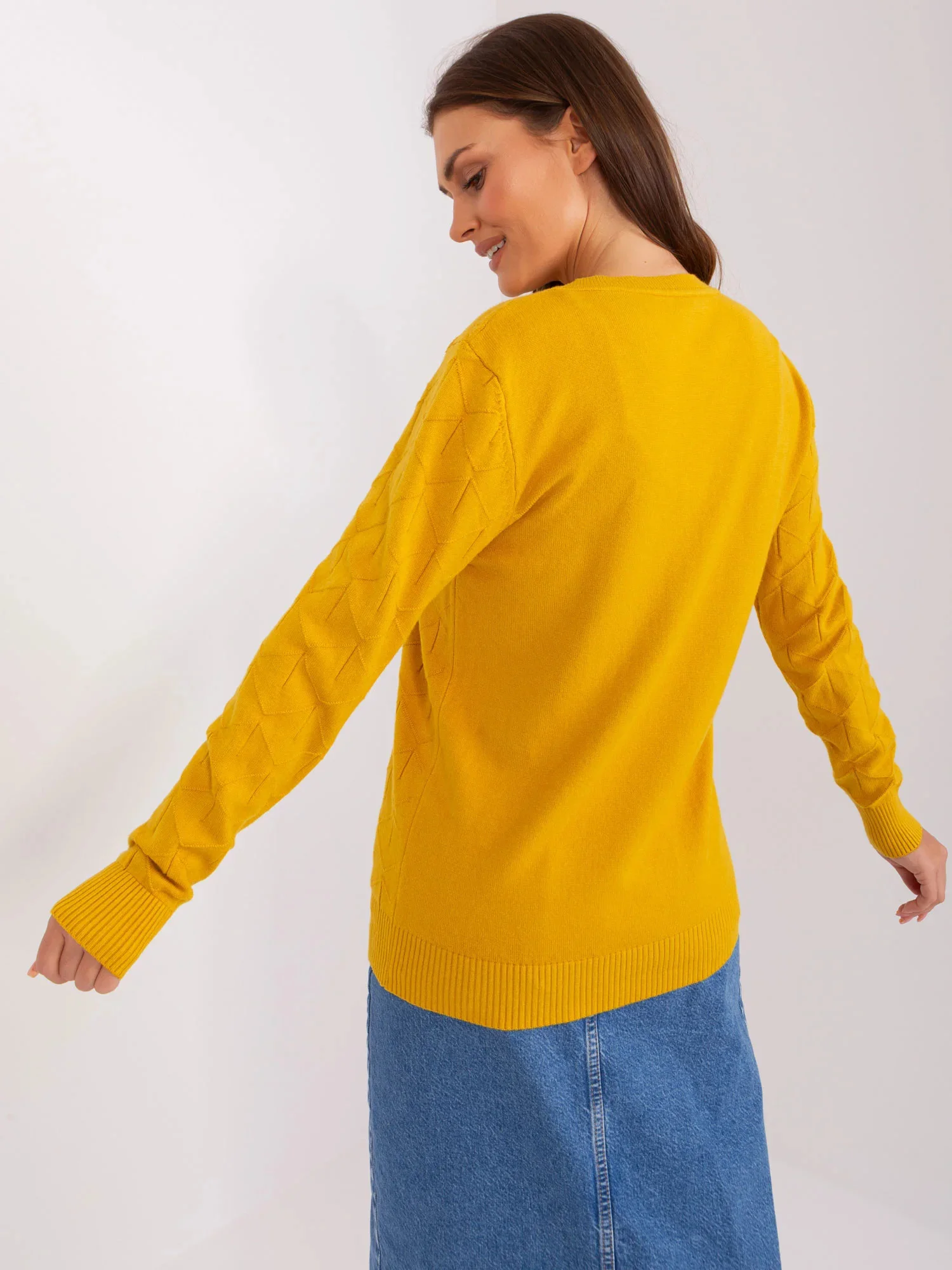 Tmavě žlutý klasický svetr s dlouhým rukávem .
