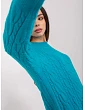 Tyrkysový svetr s kostkami a žebrováním .