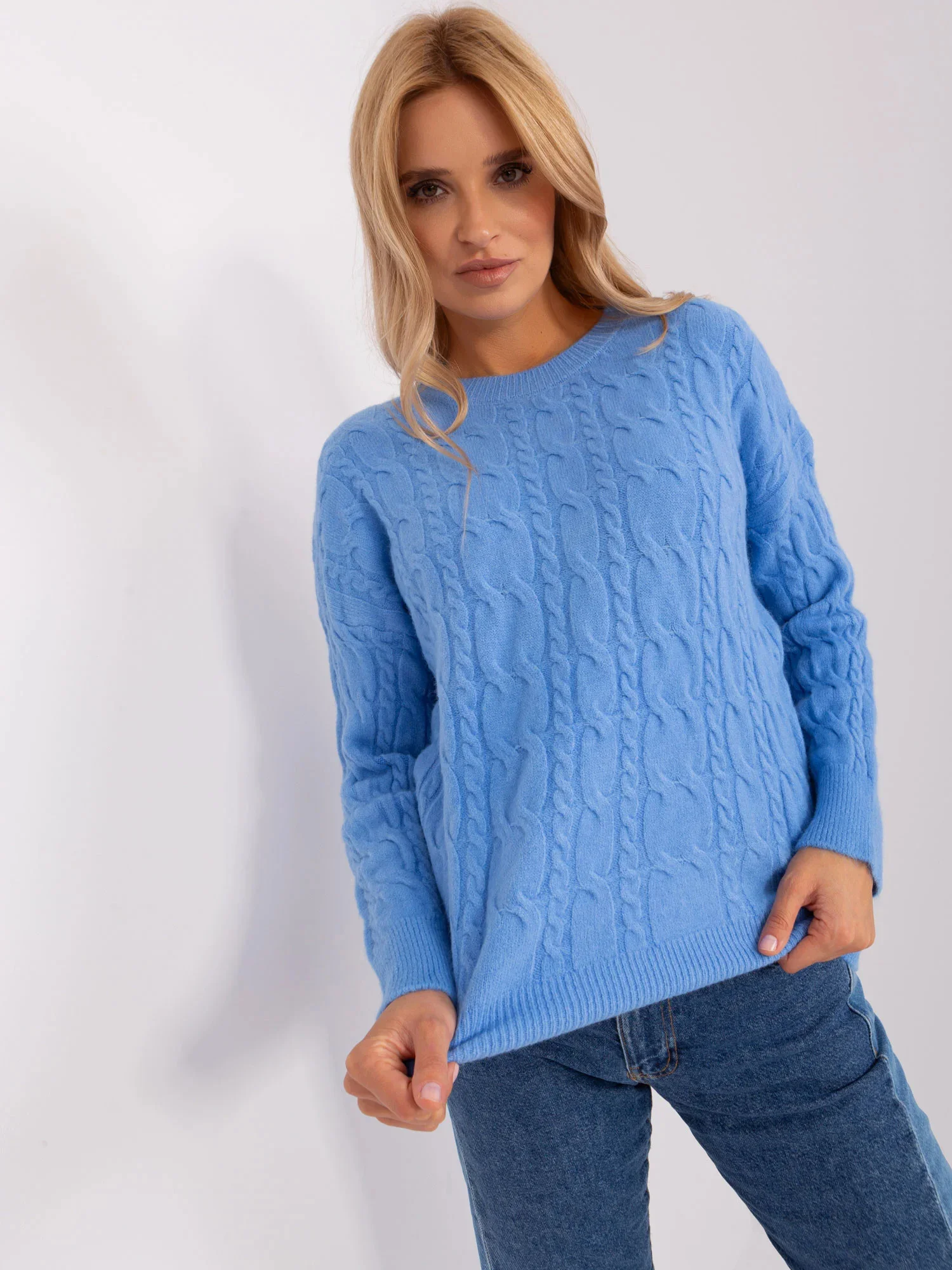 Rozměry svetru v jedné velikosti měřené na plocho: šířka v podpaží - 60 cm, délka rukávu - 60 cm, celková délka - 63 cm.EAN čárové kódy zboží jsou: