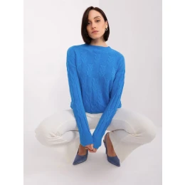 Modrý kostkovaný svetr s přídavkem viskózy .