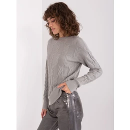 Šedý pletený kostkovaný svetr.