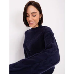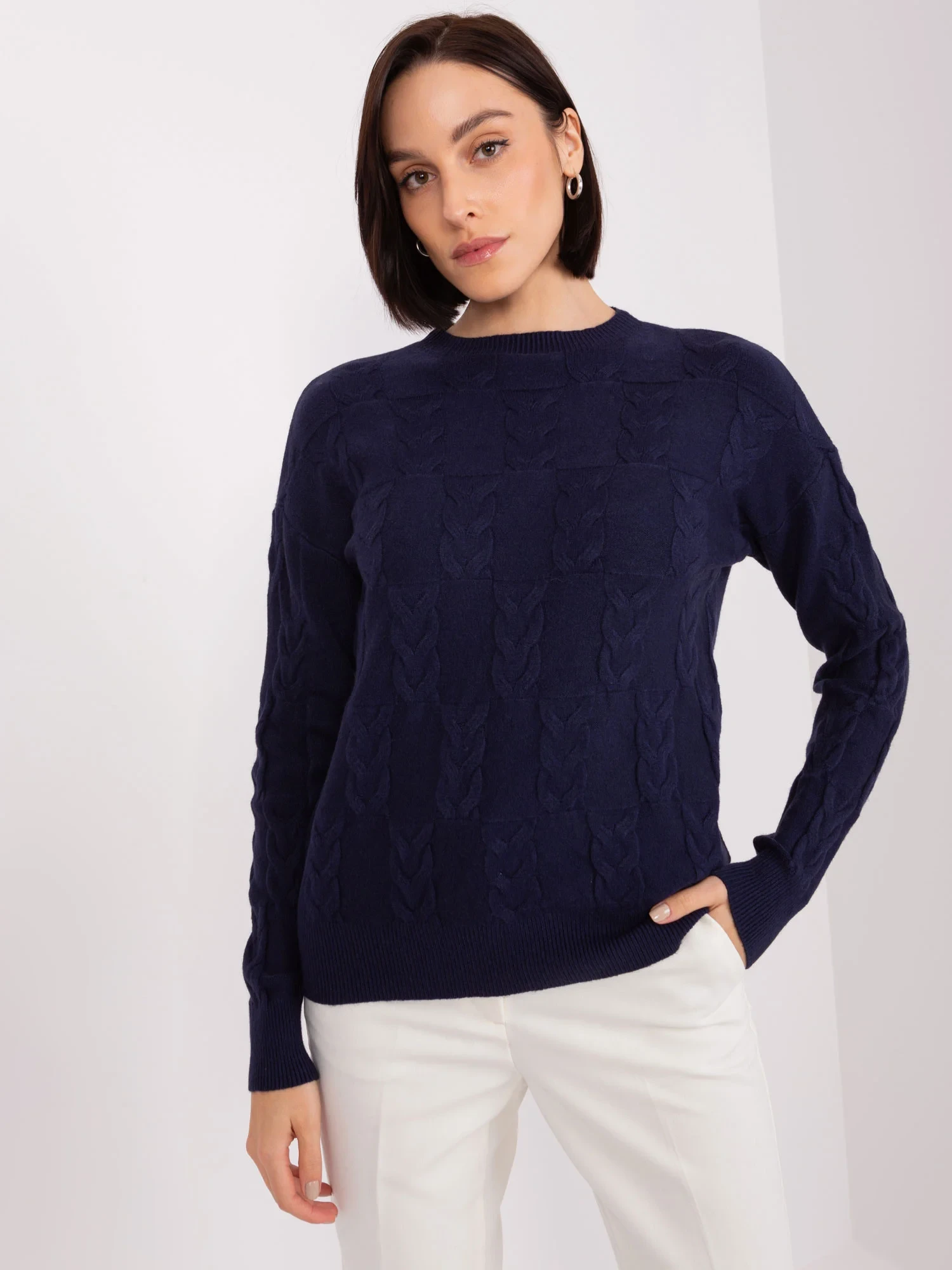 Námořnicky modrý kostkovaný svetr volného střihu .