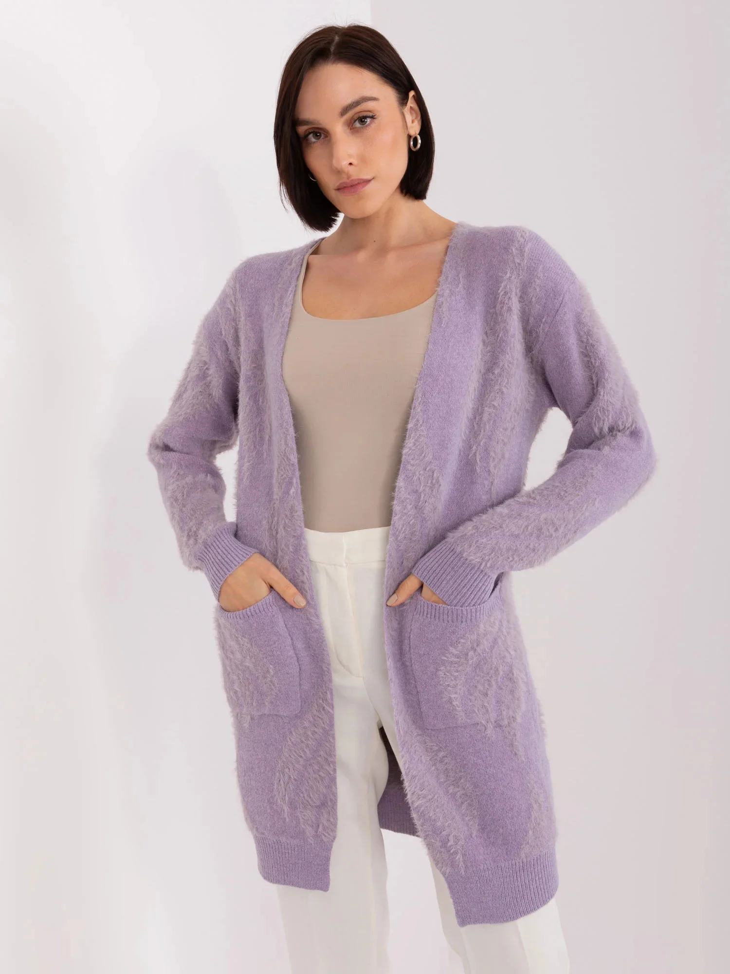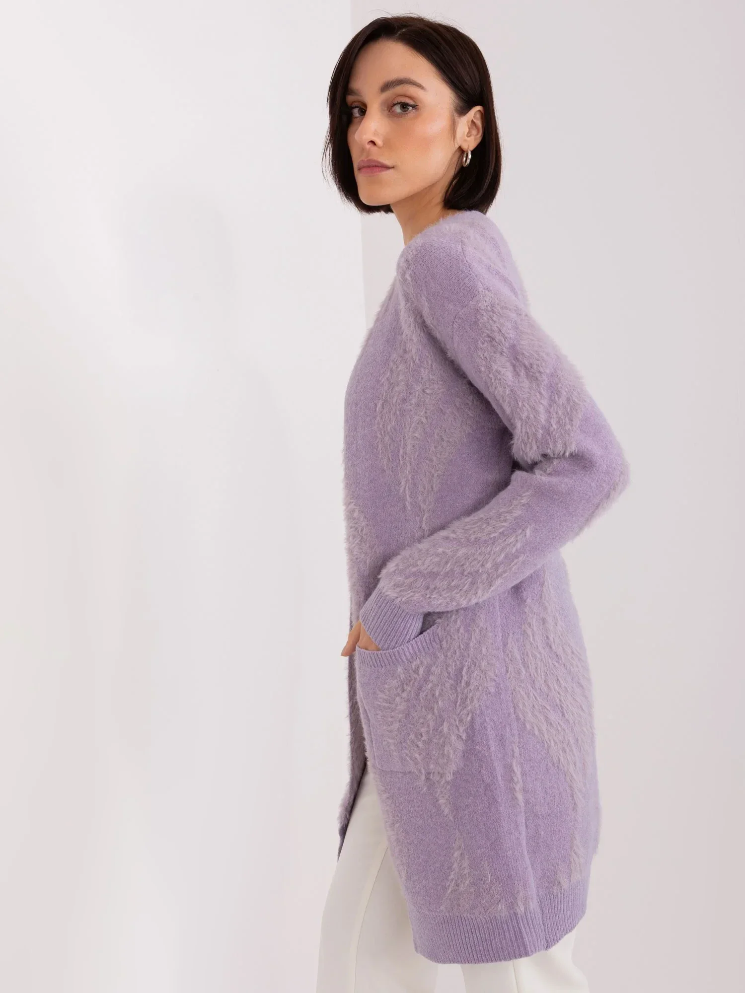 Světle fialový dámský vzorovaný svetr .