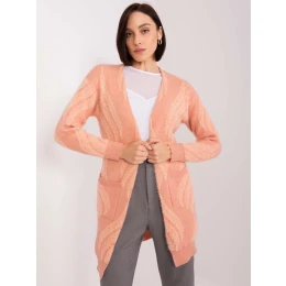Špinavě růžový svetr s kapsami.
