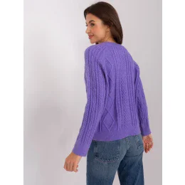 Fialový elastický svetr s kulatým výstřihem .