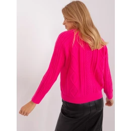 Tmavě růžový kostkovaný svetr bez knoflíků.