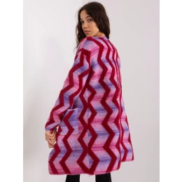 Růžový svetr s geometrickým vzorem.