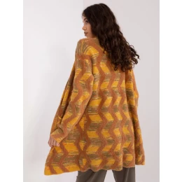 Tmavě žlutý svetr s geometrickým vzorem .