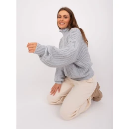Šedý dámský oversize svetr s rolákem .