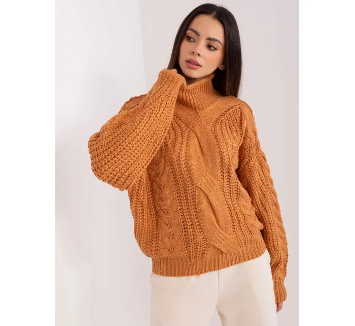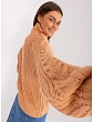 Světle hnědý dámský svetr nadměrné velikosti s kostkami .
