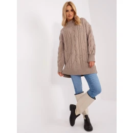 Tmavě béžové úpletové šaty oversize střihu .