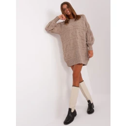 Tmavě béžové pletené šaty s kostkami .