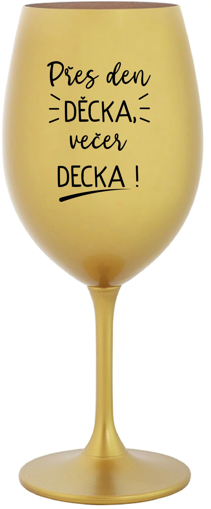 PŘES DEN DĚCKA, VEČER DECKA! - zlatá sklenice na víno 350 ml