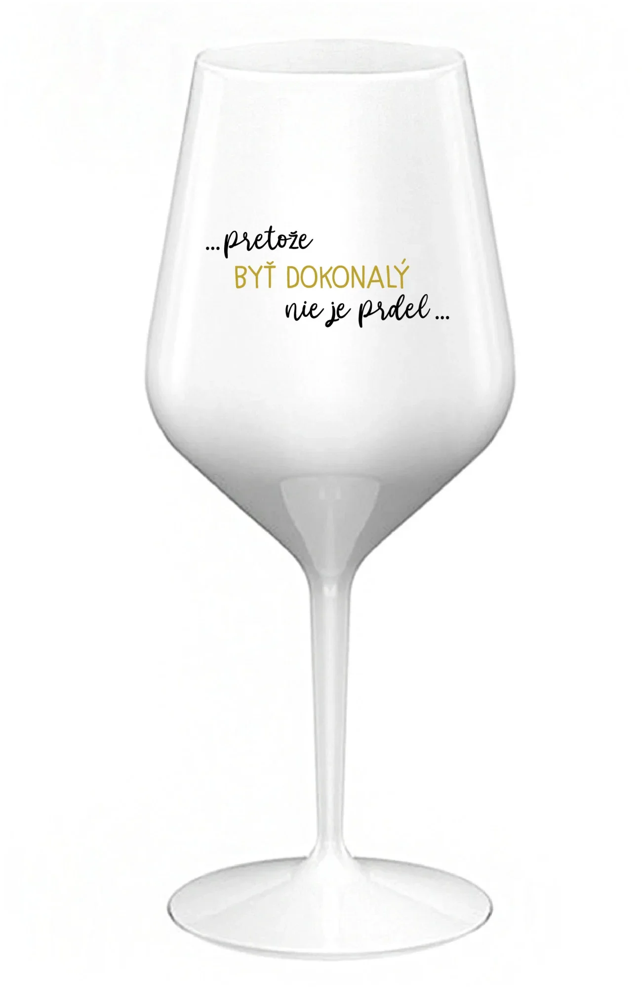 ...PRETOŽE BYŤ DOKONALÝ NIE JE PRDEL... - biely nerozbitný pohár na víno 470 ml