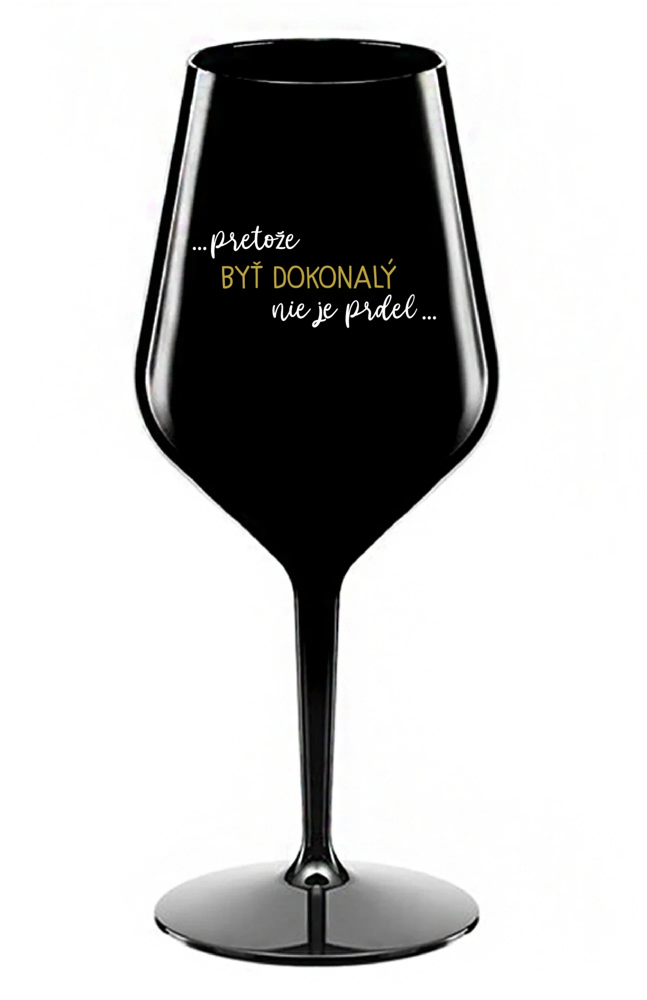 ...PRETOŽE BYŤ DOKONALÝ NIE JE PRDEL... - čierny nerozbitný pohár na víno 470 ml