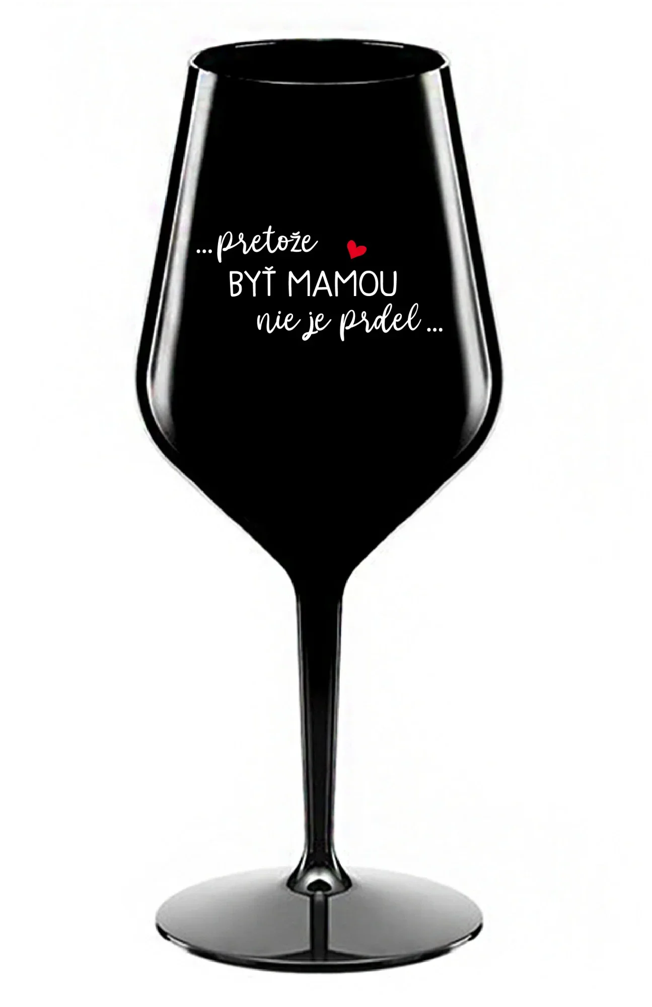 ...PRETOŽE BYŤ MAMOU NIE JE PRDEL... - čierny nerozbitný pohár na víno 470 ml