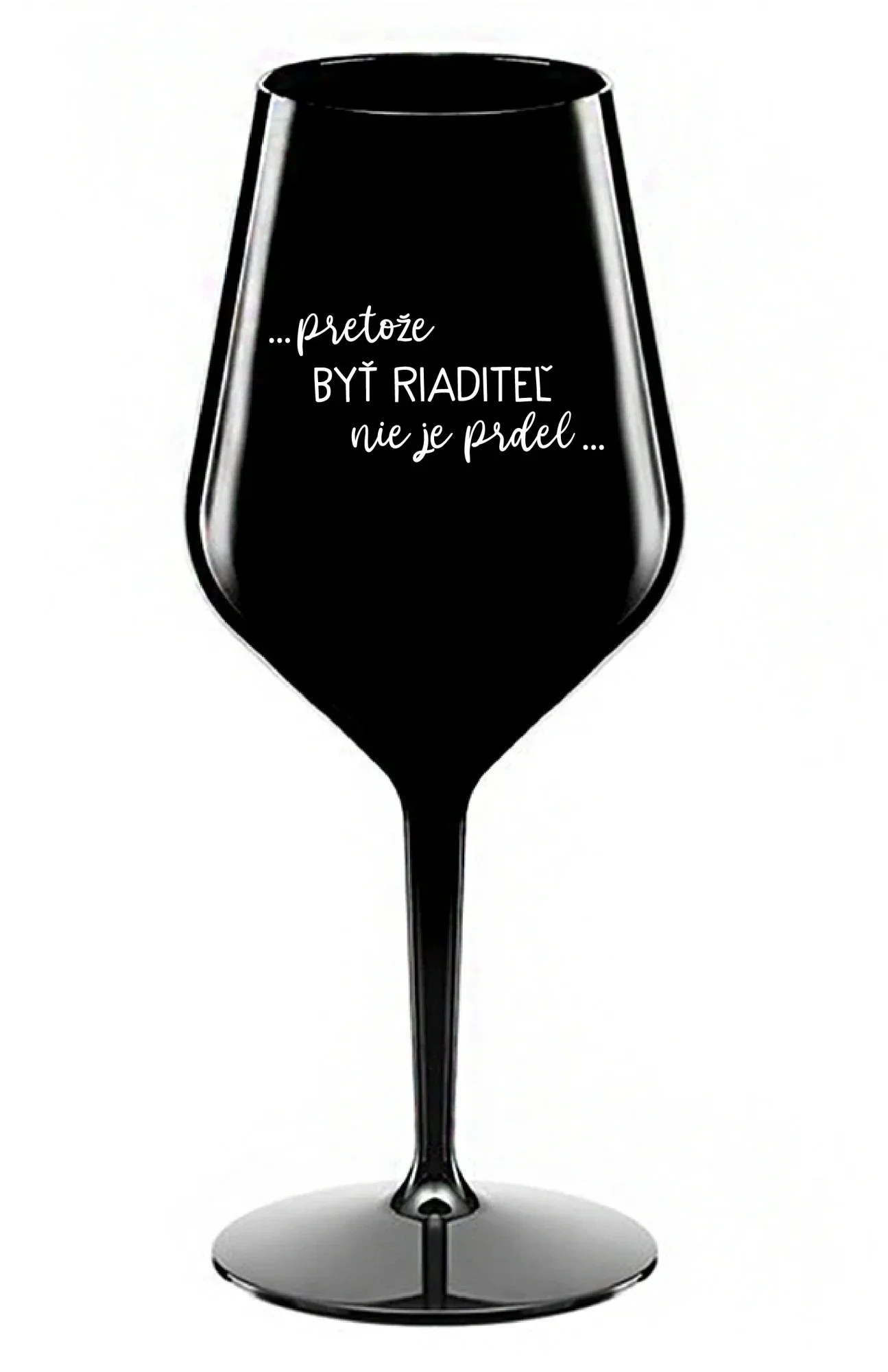 ...PRETOŽE BYŤ RIADITEĽ NIE JE PRDEL... - čierny nerozbitný pohár na víno 470 ml