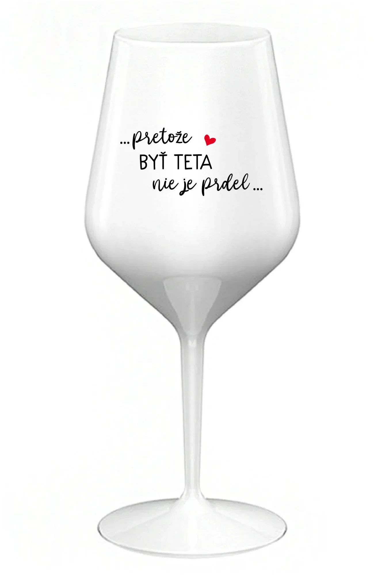 ...PRETOŽE BYŤ TETA NIE JE PRDEL... - biely nerozbitný pohár na víno 470 ml