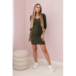 Přiléhavé šaty s khaki výstřihem