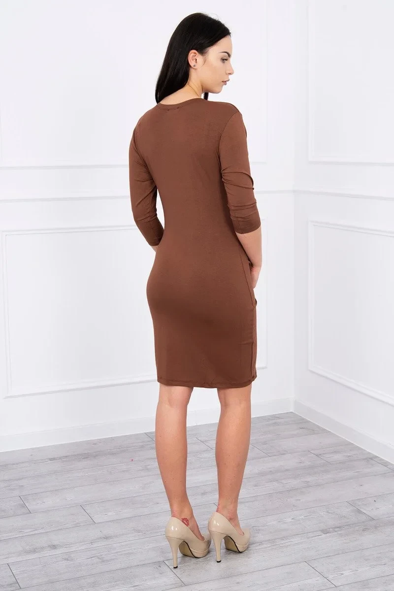Přiléhavé šaty s výřezem pod prsy hnědé barvy