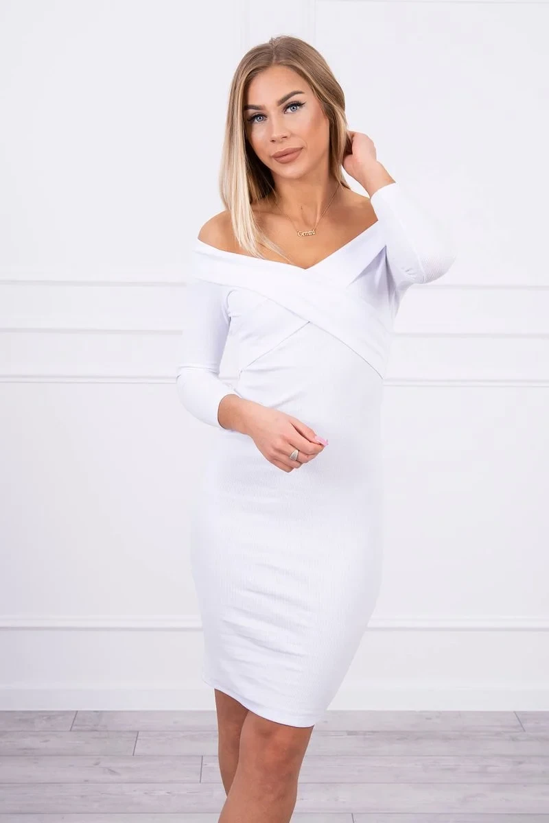 Přiléhavé šaty s výstřihem do V bílé