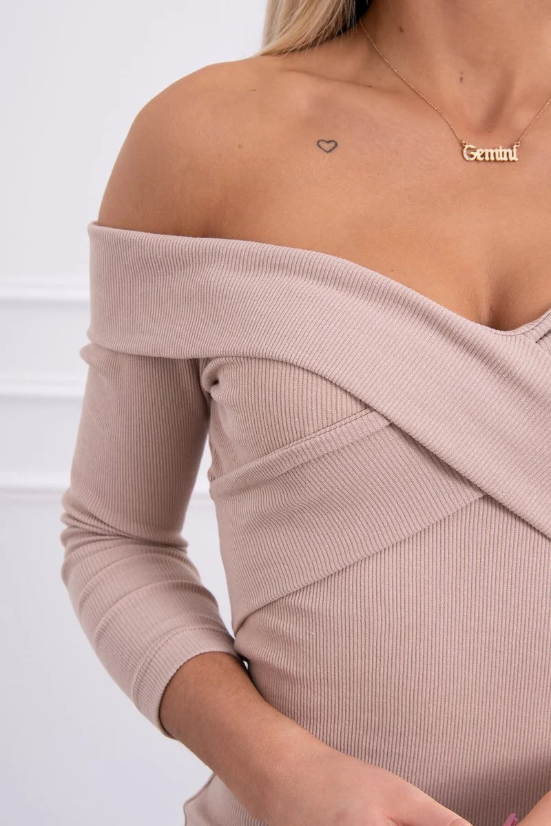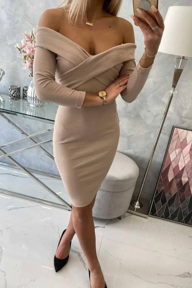 Přiléhavé šaty s výstřihem do V světle béžové barvy