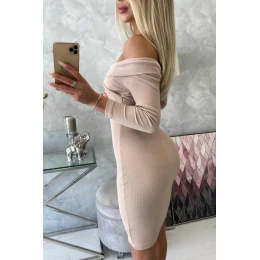 Přiléhavé šaty s výstřihem do V světle béžové barvy