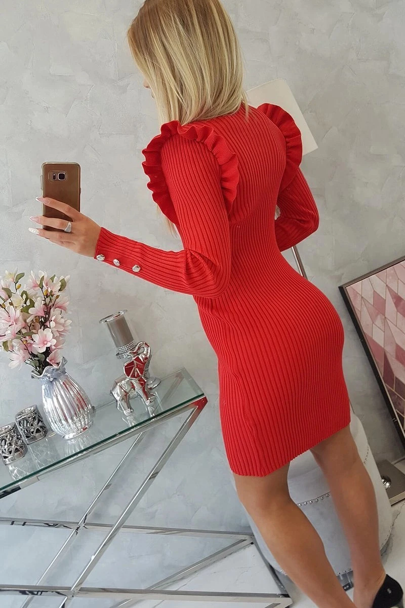 Přidání recenze k Přiléhavé svetrové šaty s knoflíky červené