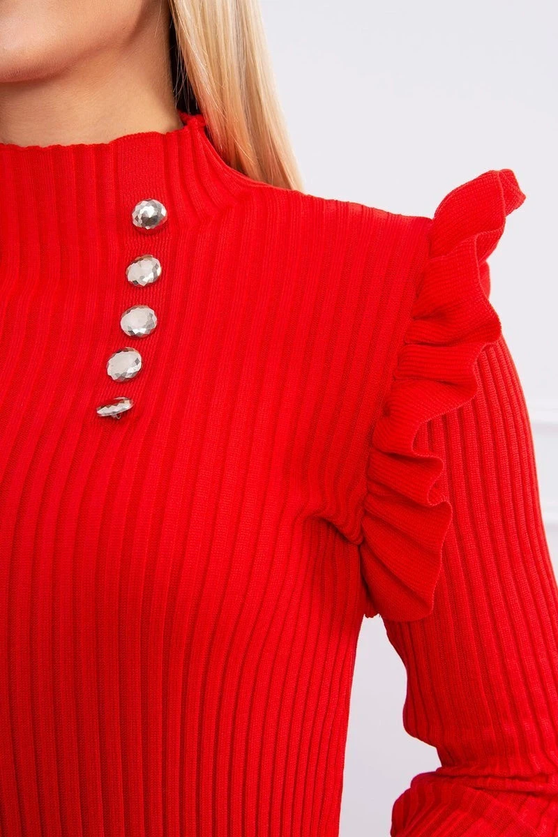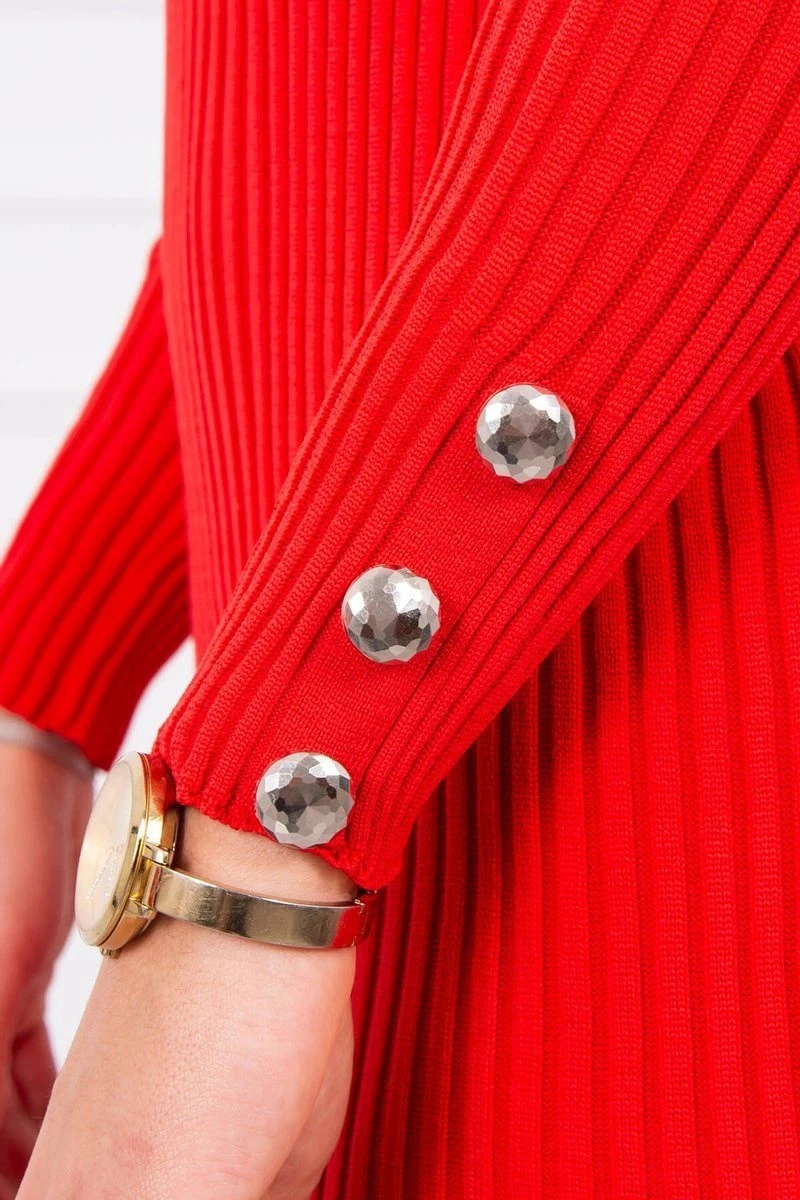 Přiléhavé svetrové šaty s knoflíky červené