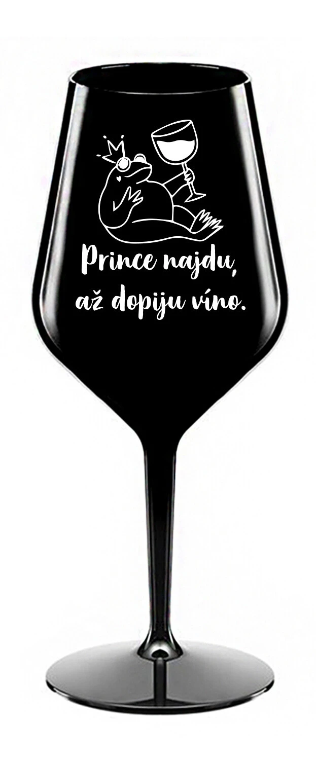PRINCE NAJDU, AŽ DOPIJU VÍNO. - černá nerozbitná sklenice na víno 470 ml