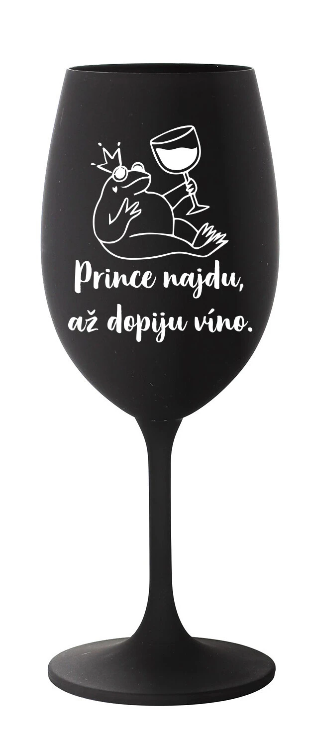 PRINCE NAJDU, AŽ DOPIJU VÍNO. - černá sklenice na víno 350 ml