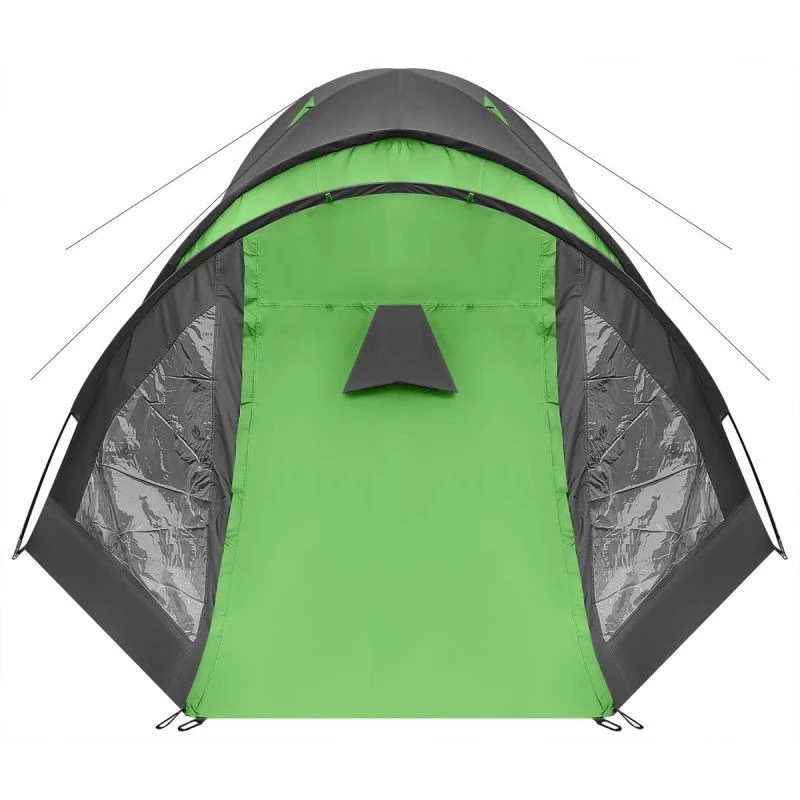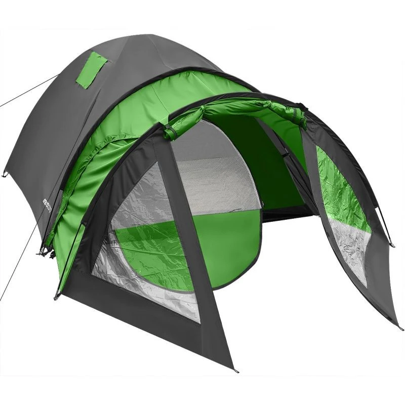 Cały namiot jest lekki waży zaledwie ok.3,4 kg i jest spakowany w poręczny zamykany na zamek pokrowiec z uchwytem i kompresją. Jest łatwy w montażu, wodoodporny na poziomie 3000 mm słupa wody i zaprojektowany dla 4 osób.