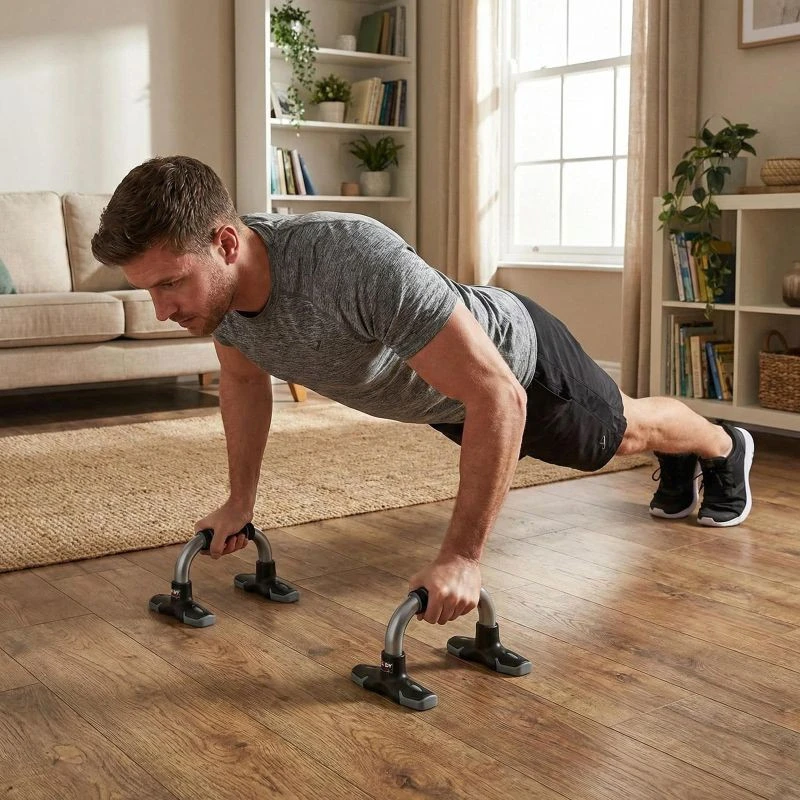 Úchyty na kliky minimalizují tlak na ruce, zápěstí a lokty při provádění kliků s úzkým, širokým rozestupem a příčně k tělu. Díky tomu je cvičení velmi pohodlné a bezpečné, protože klouby jsou chráněny před zatížením.