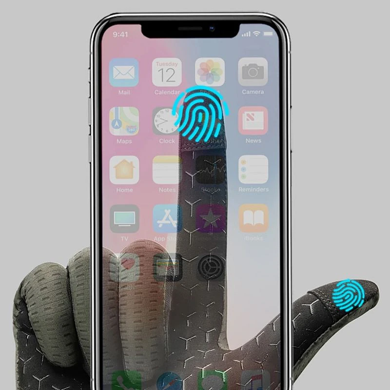 - Podpora dotykového displeje: Dva prsty opatřené vodivou tkaninou umožňují pohodlné používání chytrého telefonu nebo navigace.