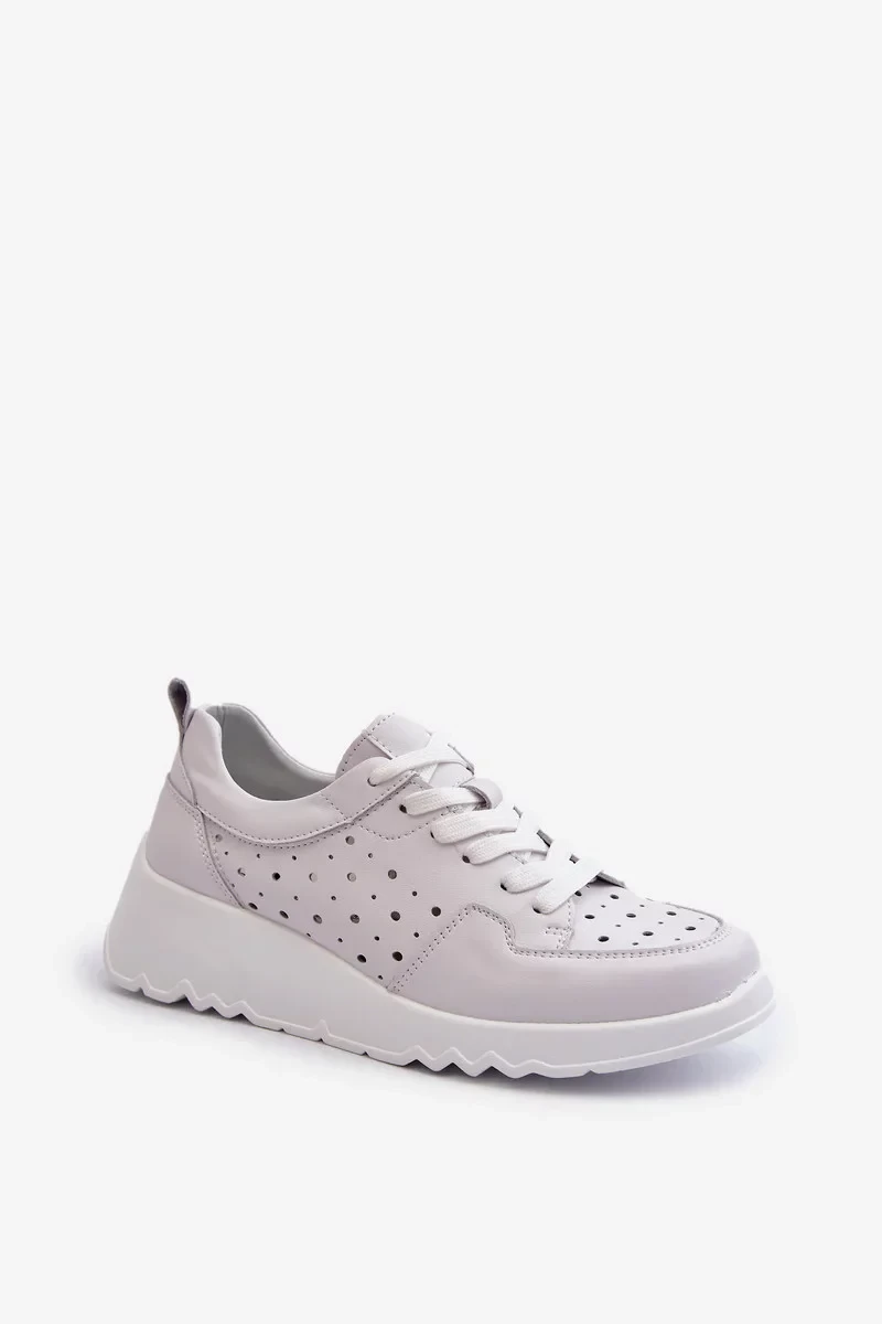 Prolamované dámské tenisky na klínku, přírodní kůže, světle šedá S.Barski