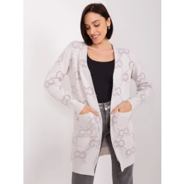 Světle fialový vzorovaný svetr s kapsami .