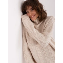 Světle béžový dámský svetr s plédy a rolákem .
