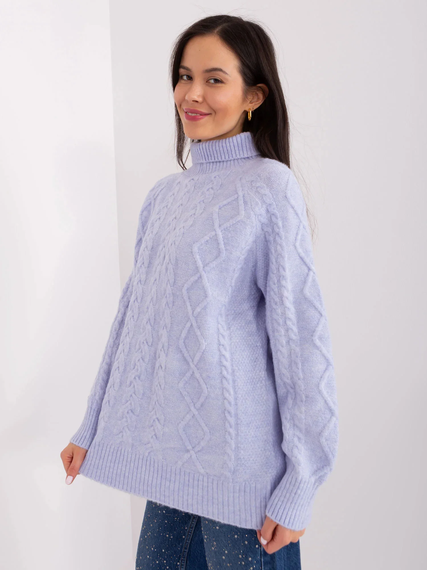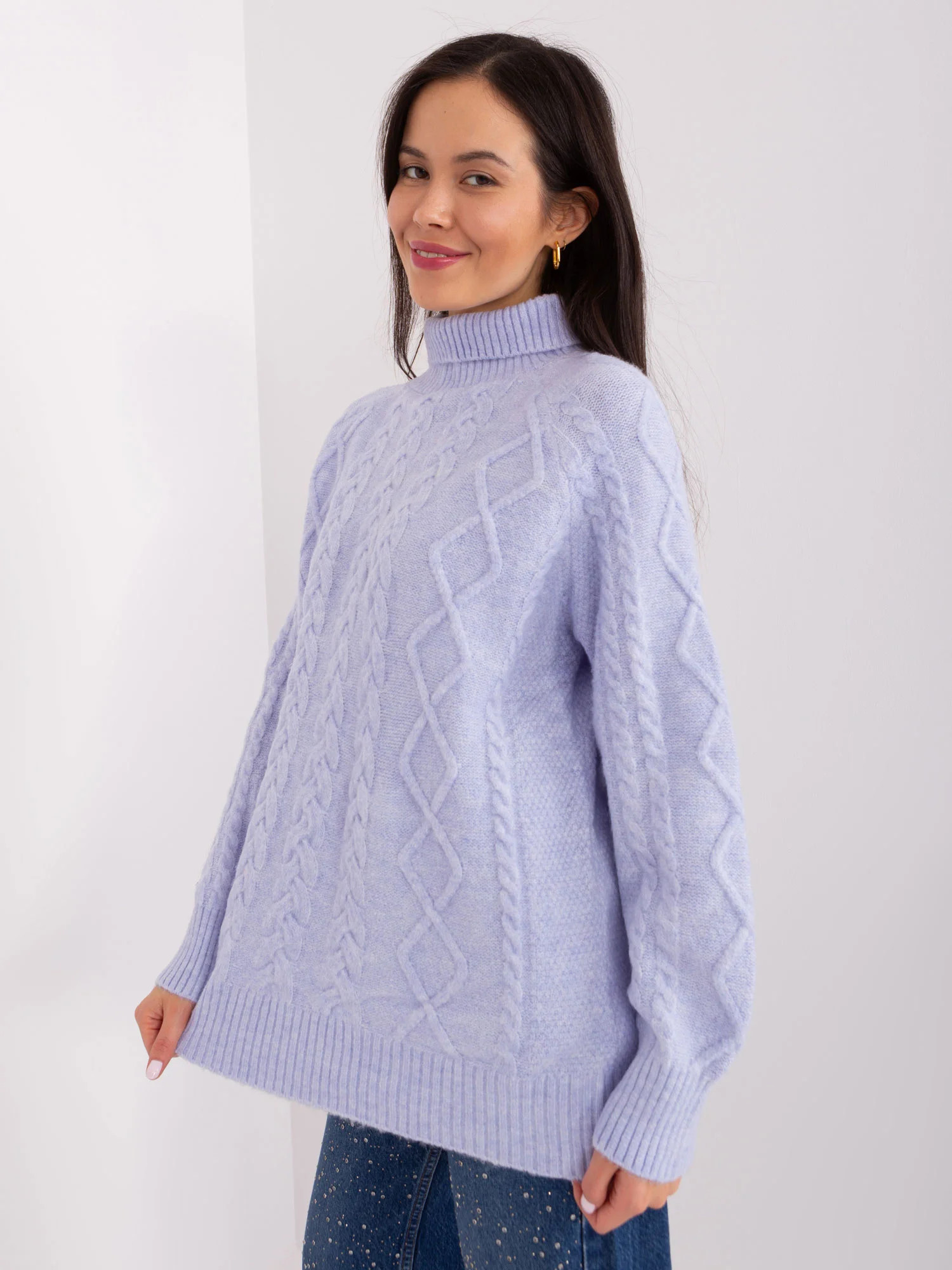 Rozměry svetru v jedné velikosti měřené na plocho: šířka v podpaží - 70 cm, délka rukávu - 60 cm, celková délka - 67 cm EAN čárové kódy zboží jsou: