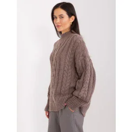 Hnědý svetr s plédy a žebrovanými lemy .
