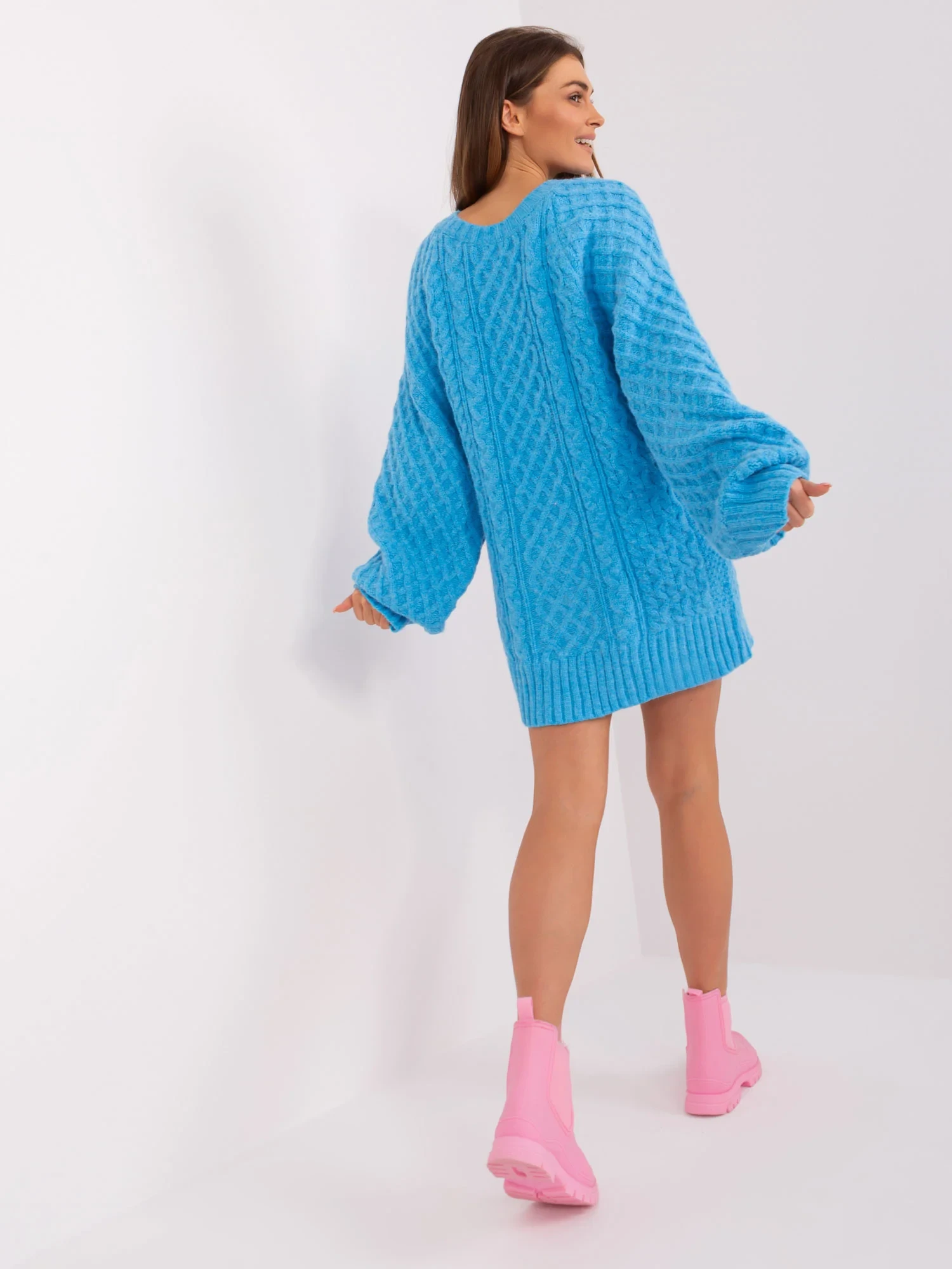 Modré úpletové šaty oversize střihu .