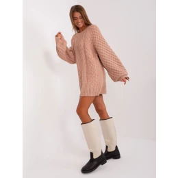 Špinavě růžové pletené šaty v délce mini .