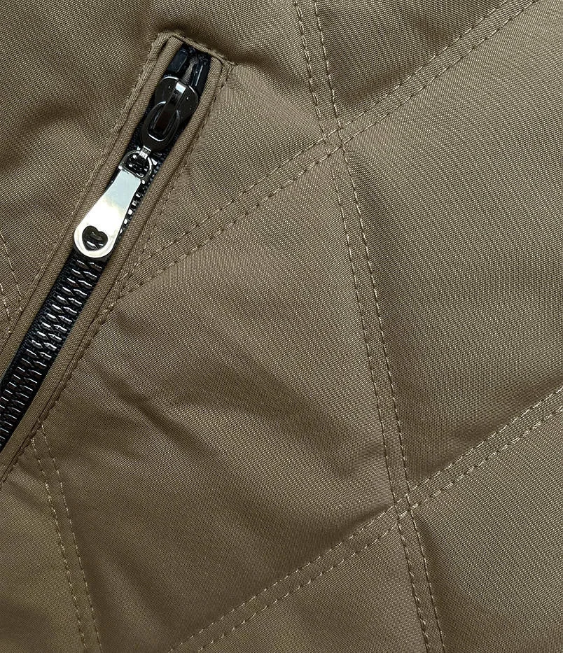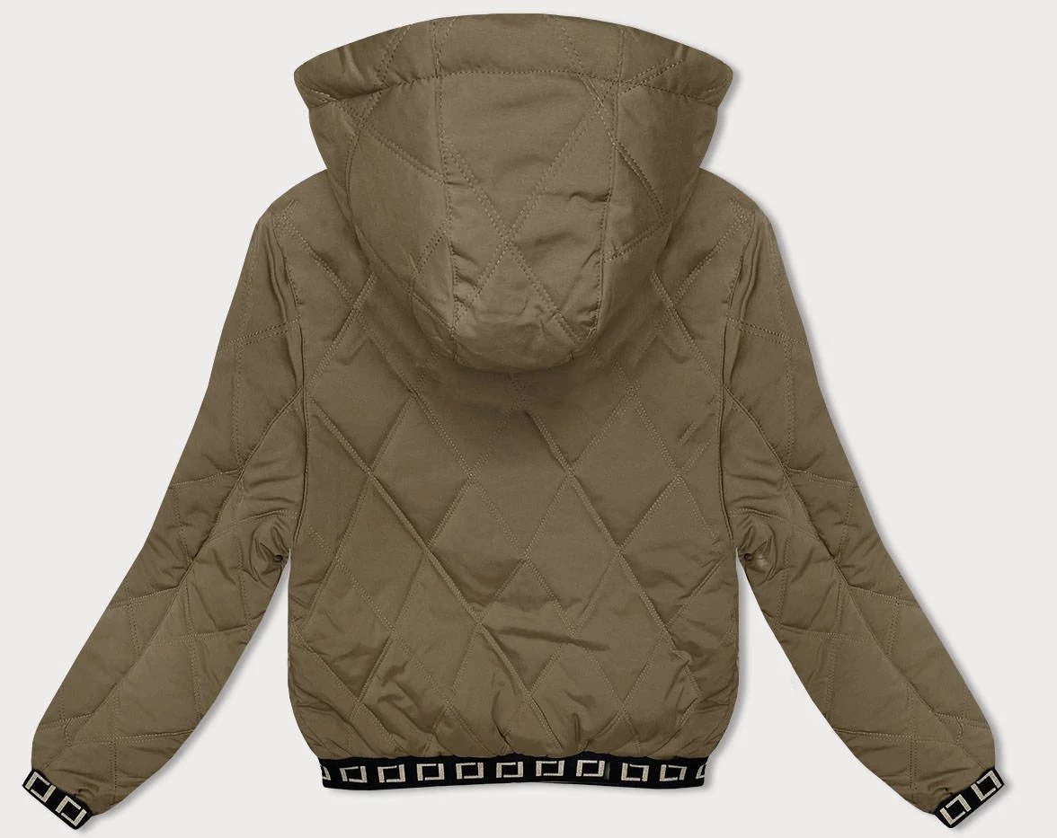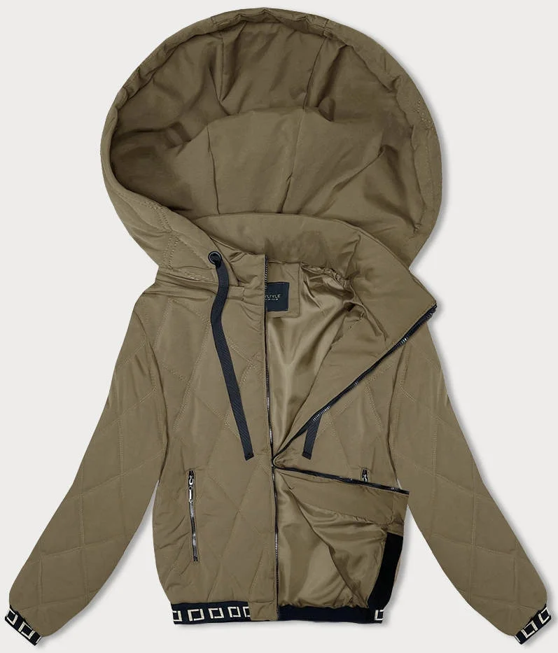 Prošívaná bunda v olivové barvě s ozdobnými stahovacími lemy (16M9085-84)